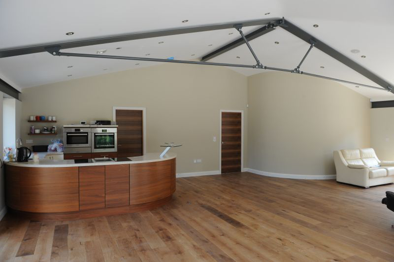Firstly, plasterboards are fitted to the internal faces of the building to provide a smooth and even surface throughout. Once installed, the plasterboards are either taped and jointed, or a skim coat of finishing plaster is applied (approximately 2-3 mm thick). After the skim coat of finishing plaster has dried, the plasterboards can be painted.