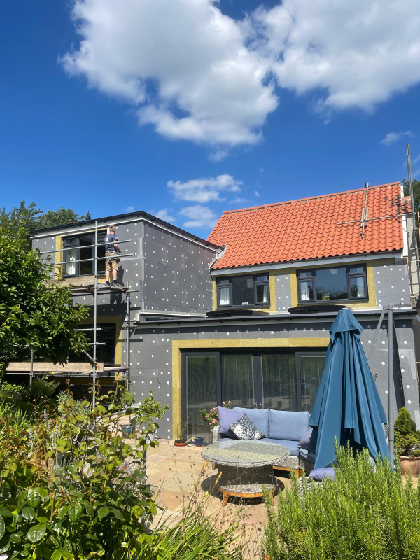E W I ( external wall insulation) render system to a solid brick wall construction home with no cavity. Burton Joyce, near Nottingham